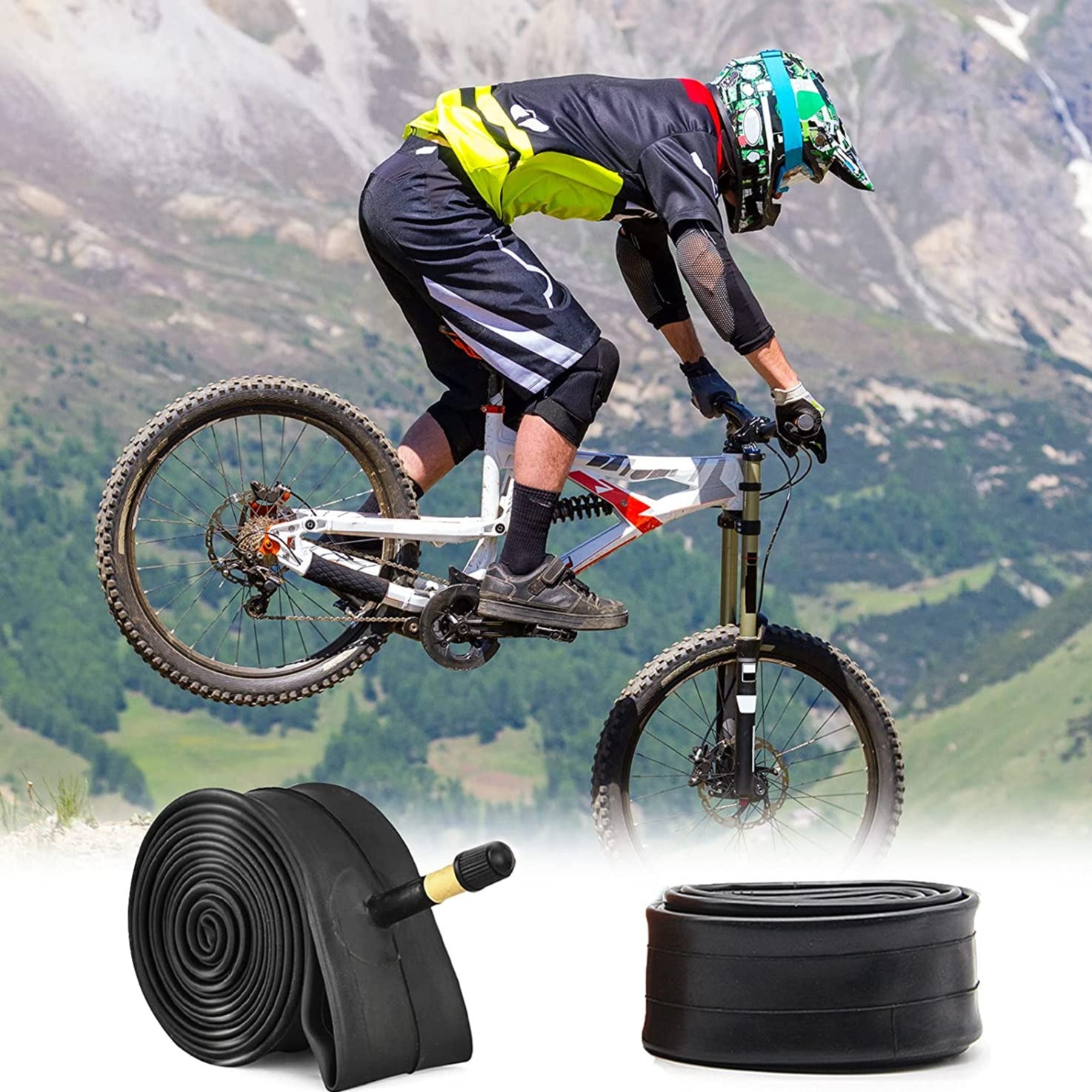 These tubes are 27.5鈥? a size that has surfaced recently. They are Schraeder valves. Which means they are not compatible with the thinner Presta style valves. Remember to install tubes without twisting. This is done with a small amount of air in the tube while installing. Inflate slowly while watching the bead. You want it to be even all the way around, no bulging. Using a pump with a quality gauge inflate to the PSI listed on the side of the tire and top it off every couple of weeks. Hope this helps.