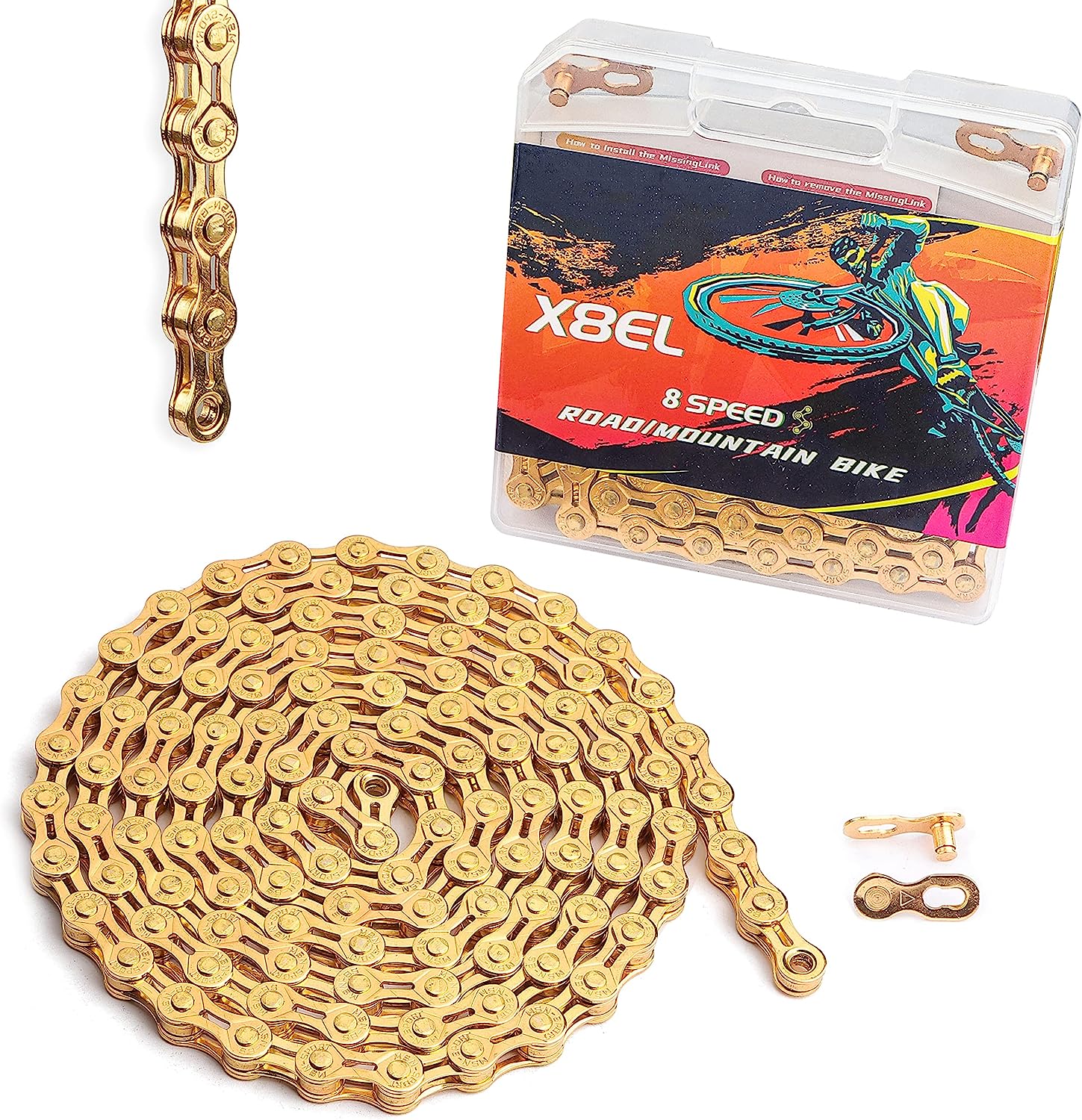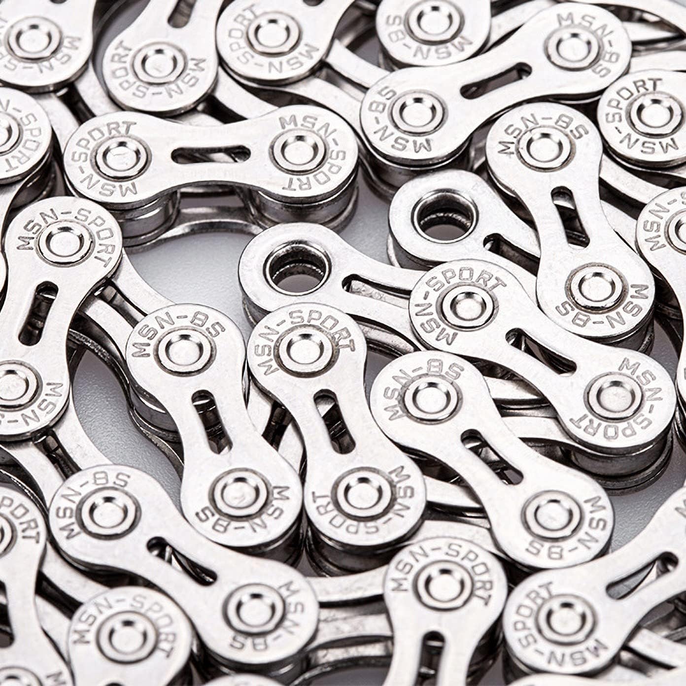 The Hycline Bike Chain is a high-quality component that is suitable for use with 6/7/8-speed bicycle chains with a size of 1/2"x3/32". It is compatible with racing bikes, road bikes, and mountain bikes.