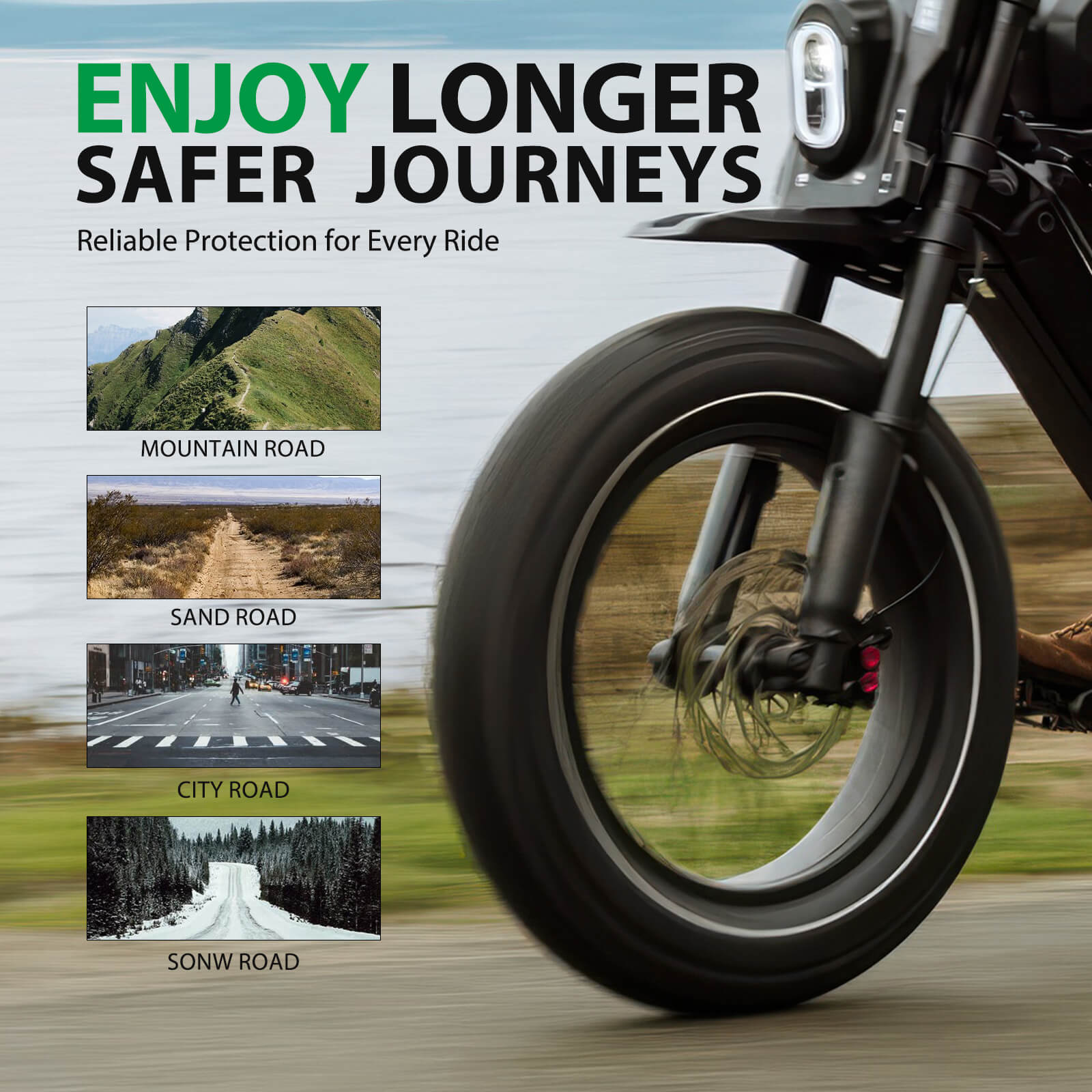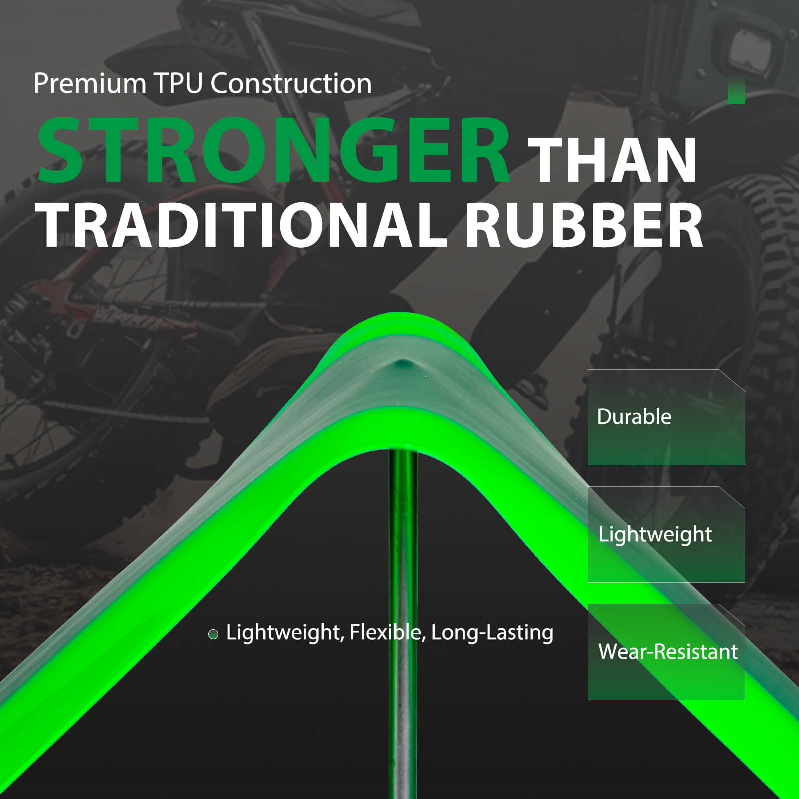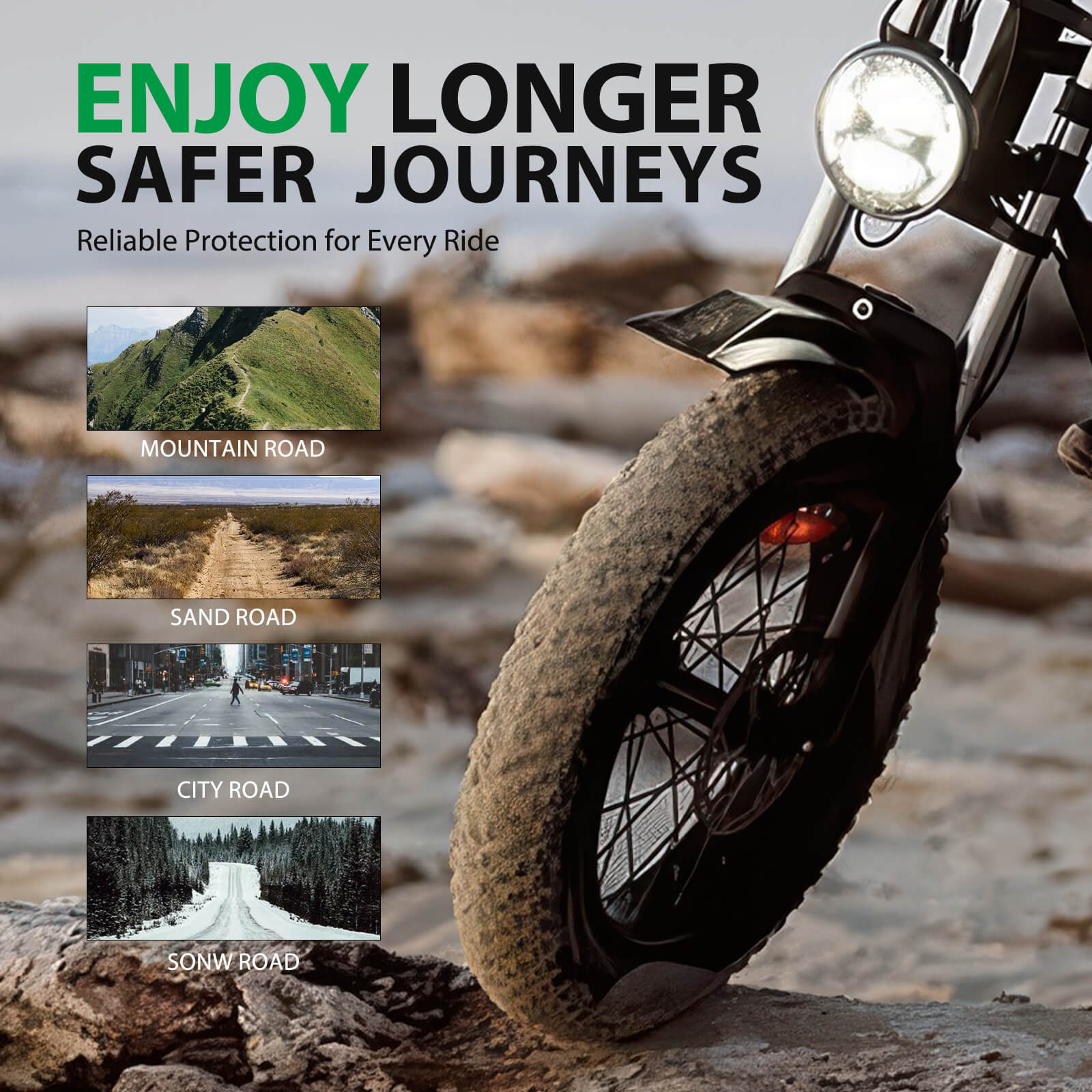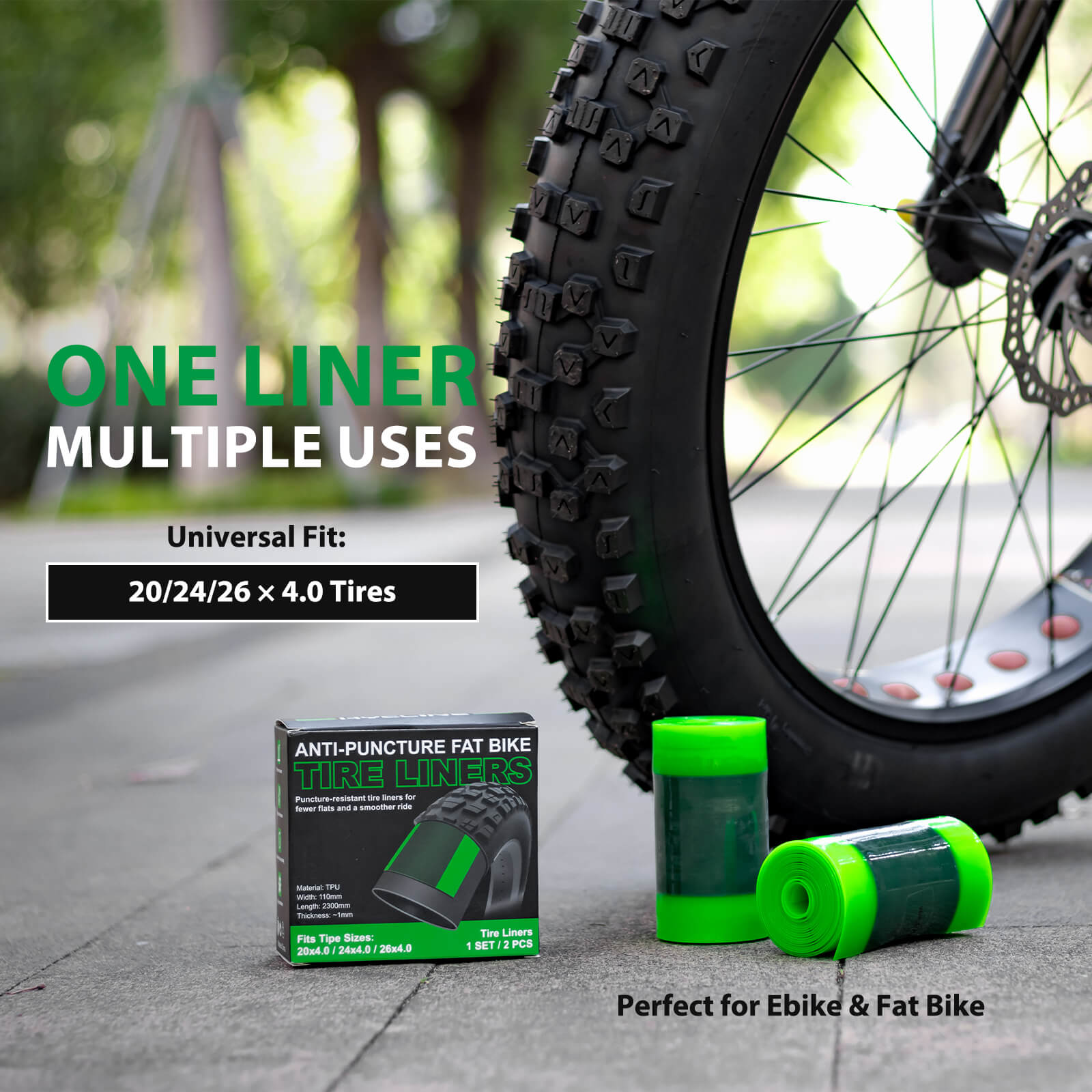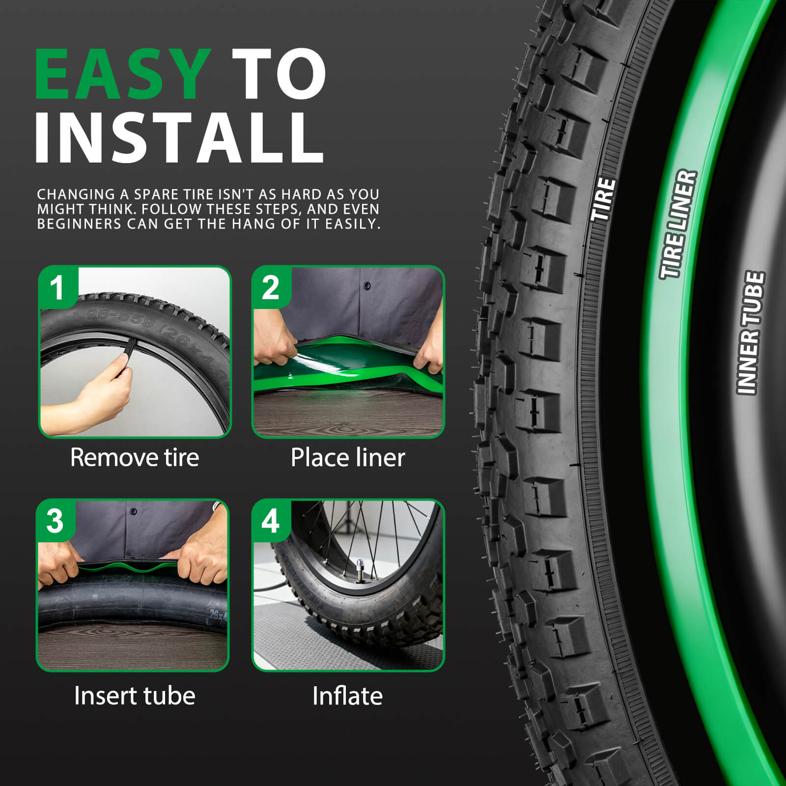 Every mile over rough terrain, gravel, sand or debris is a potential flat. Place these Fat Tire Liners into your 20"x4" to 26"x4" fat tires and ride like you mean it. Rocks, glass, thorns—whatever’s on the trail, these liners eat it for breakfast. Built tough, easy to install, and made for rough terrain MTB, fat bikes and e-bikes. Less fixing, more ripping. Go harder, roll further, and won't let the stone fragments stop you. The liner is used to be placed between the inner tube and the tire. After being inflated, it will be firmly fixed and will not slide.