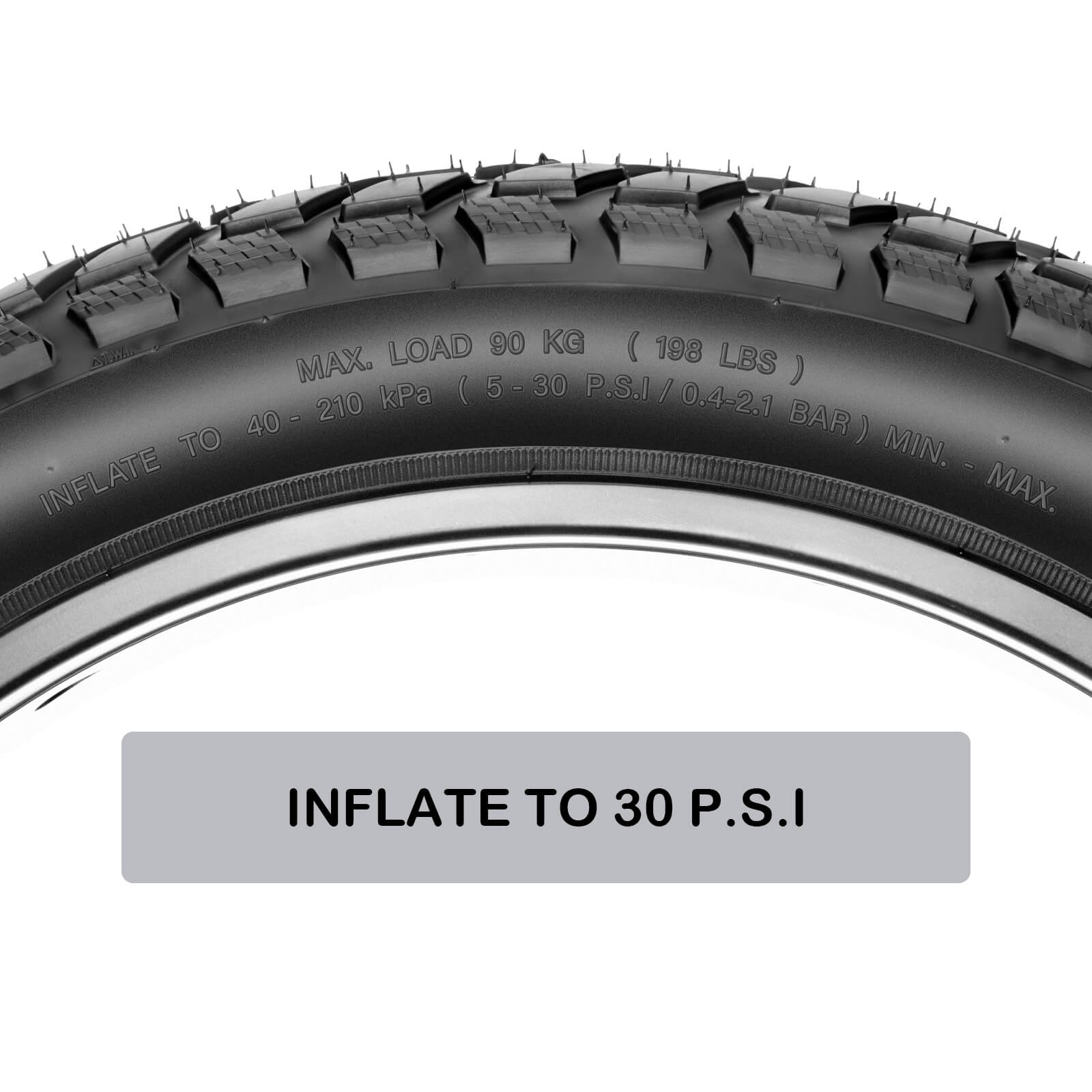 Maximum load(Single tire): 198 lbs (98kg)