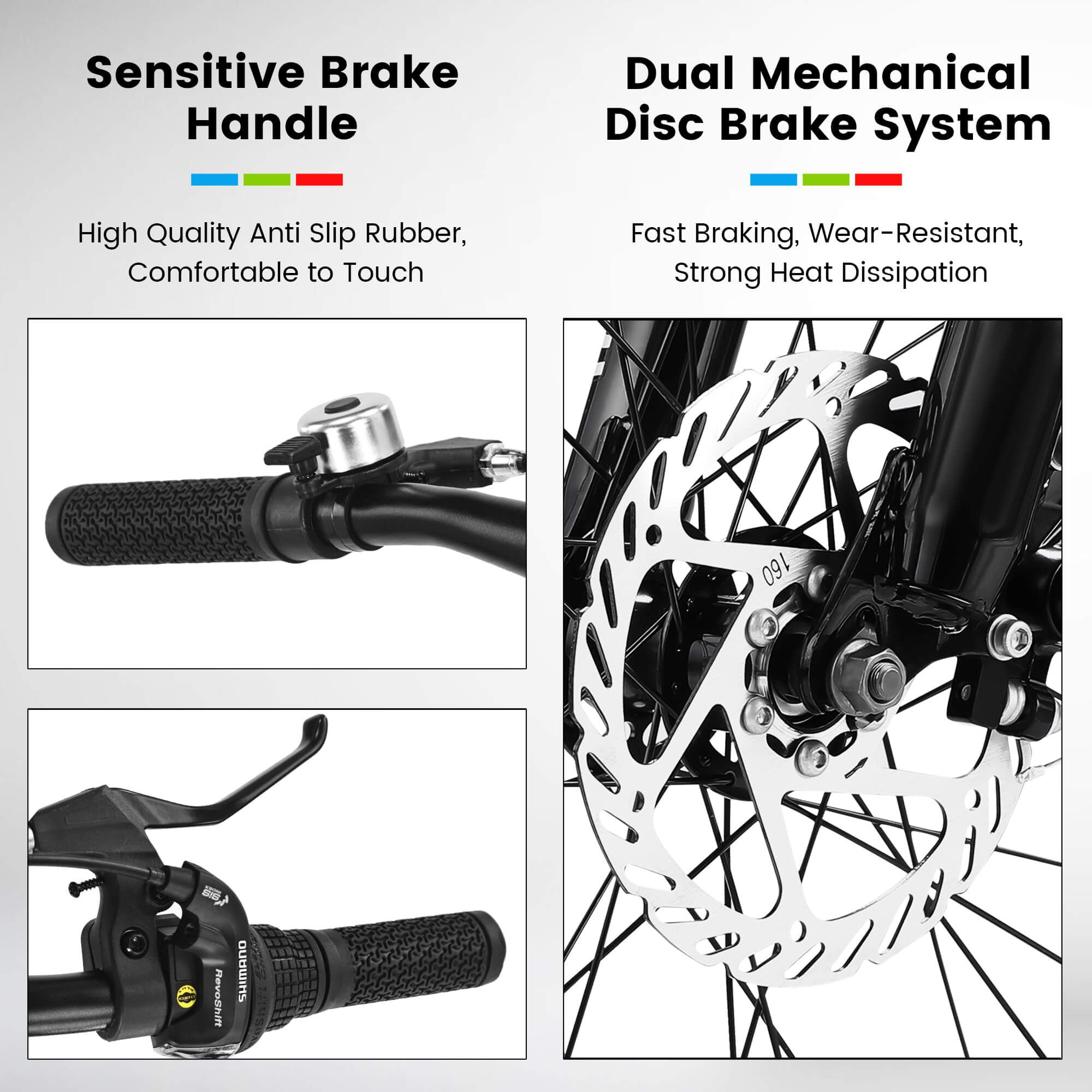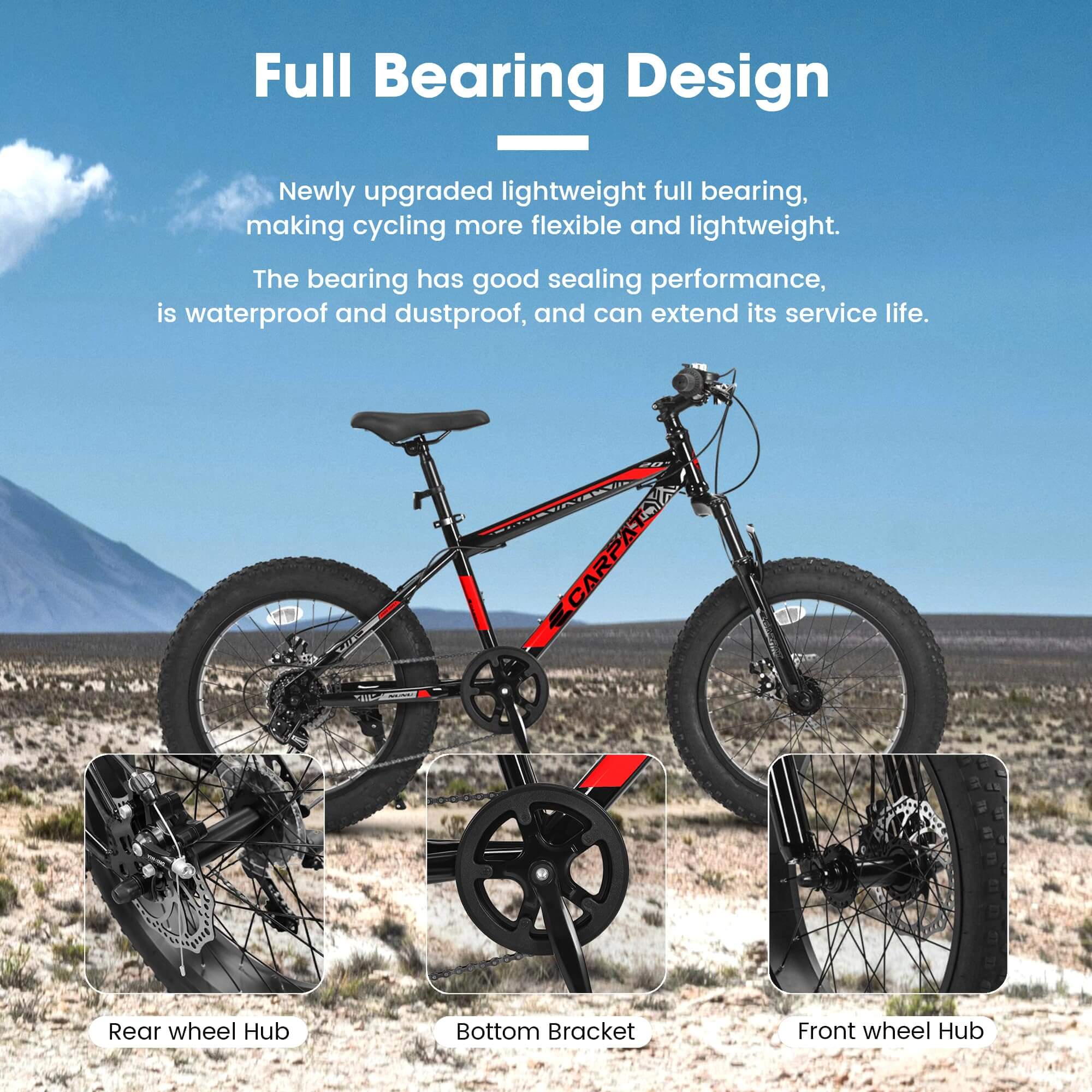 When it comes to your child's bike, you want to make sure they are riding something that's safe,comfortable, durable, and fun. This Ecarpat 20" Kids Mountain Bike is equipped with top-rated safety features for smooth, intuitive riding for beginner cyclists. Ecarpat 20" Kids Mountain Bike designed with younger riders in mind. It can help young children develop balance and coordination as they learn to ride. It's a big jump in your kids bicycle riding evolution when they move up to a 20" bike. Styled like a pro rider's bike, this kid's bike features adjustable saddle, 7-speed, dual disc brake system,durable steel frame. If you are looking for a bike that belongs to your kids, don't hesitate, allow the Ecarpat 20" Kids Bike to grow with them, put off the training wheels, and let's ride together!
