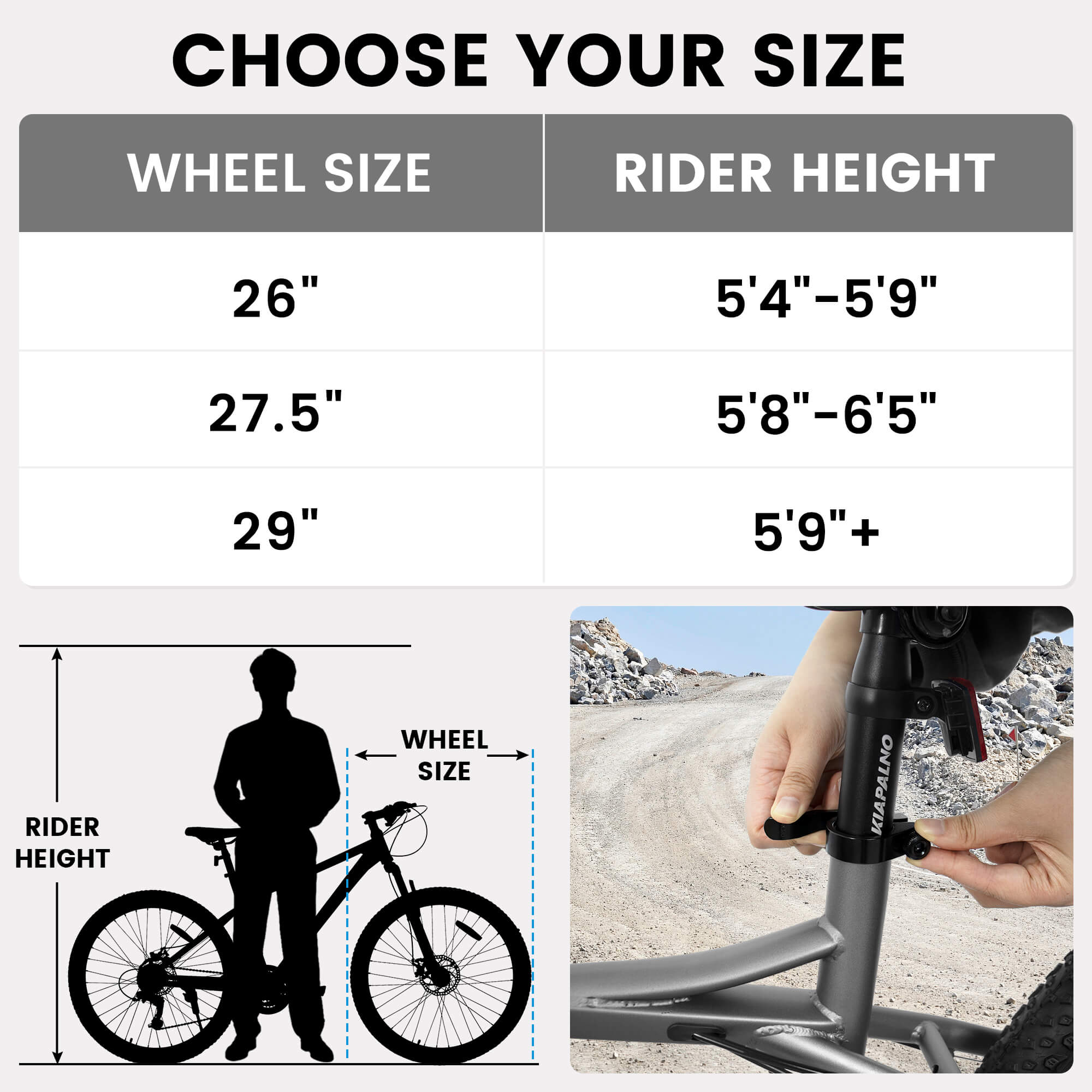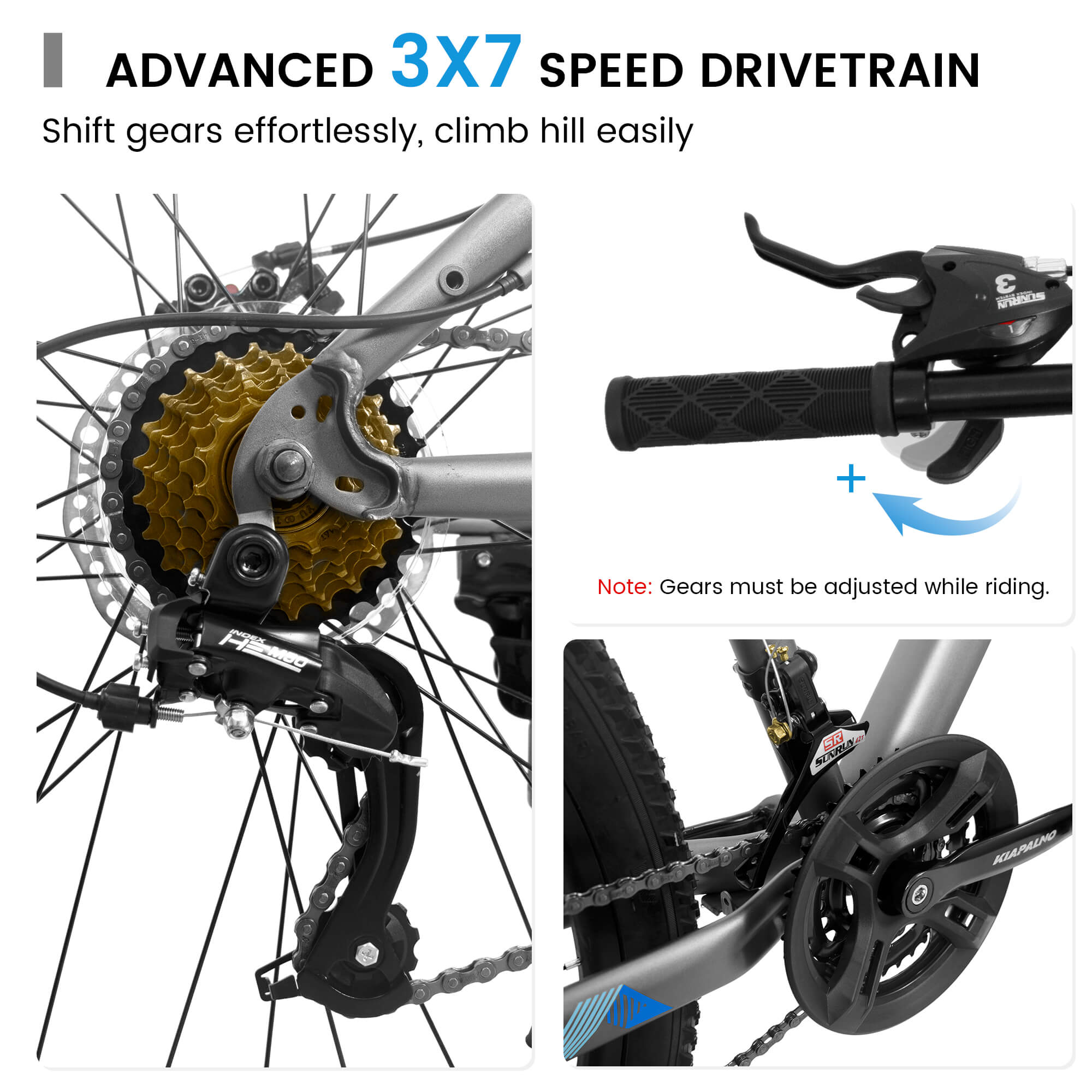The Kiapalno III 26" Mountain Bike is built for adventure, gearing an ultra-durable high-carbon steel frame that ensures strength and longevity. Its 2.125" wide, puncture-resistant mountain tires deliver superior grip and stability on rugged trails. With a 21-speed drivetrain. Plus, the advanced suspension system absorbs shocks for a smooth, controlled ride. Whether tackling dirt paths or city streets, this bike is your reliable riding companion!