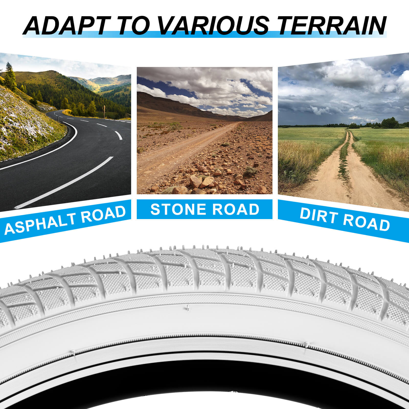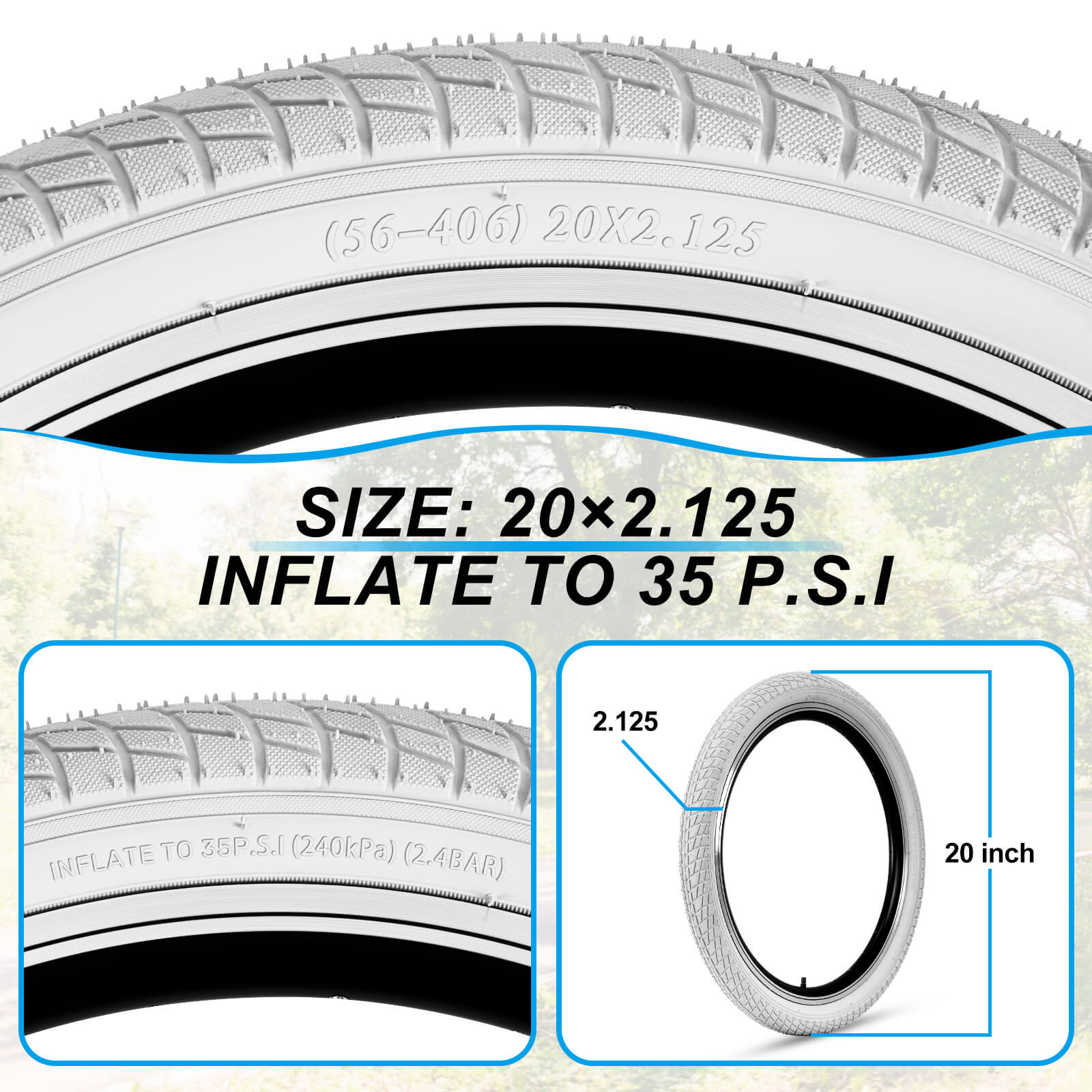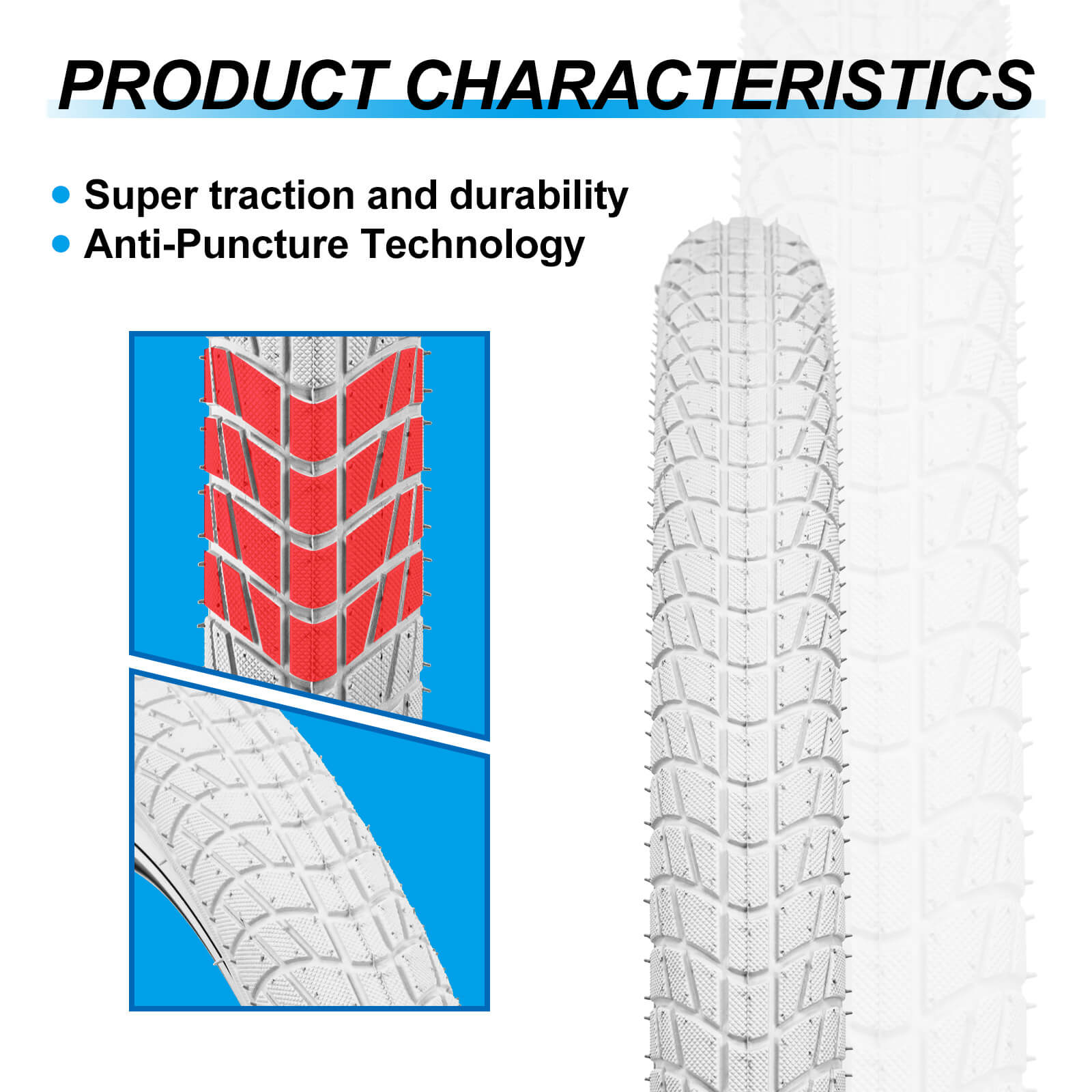 My daughters Diamondback mini Dela Cruz bicycle needed new tires because the old ones had dry rotted. It has white tires and surprisingly, white tires are a little more difficult to find, so when these came up, I immediately got them. They come folded over, secured with zip ties to make shipping easier, but they retook their shape very quickly. They came with the tire tool to help with removal and installation and those tools can be life savers if you have arthritic or weak hands. The rubber compound seems really good as well. I think these will outlast her before she outgrows the bike. Nice tires for a kids bike!