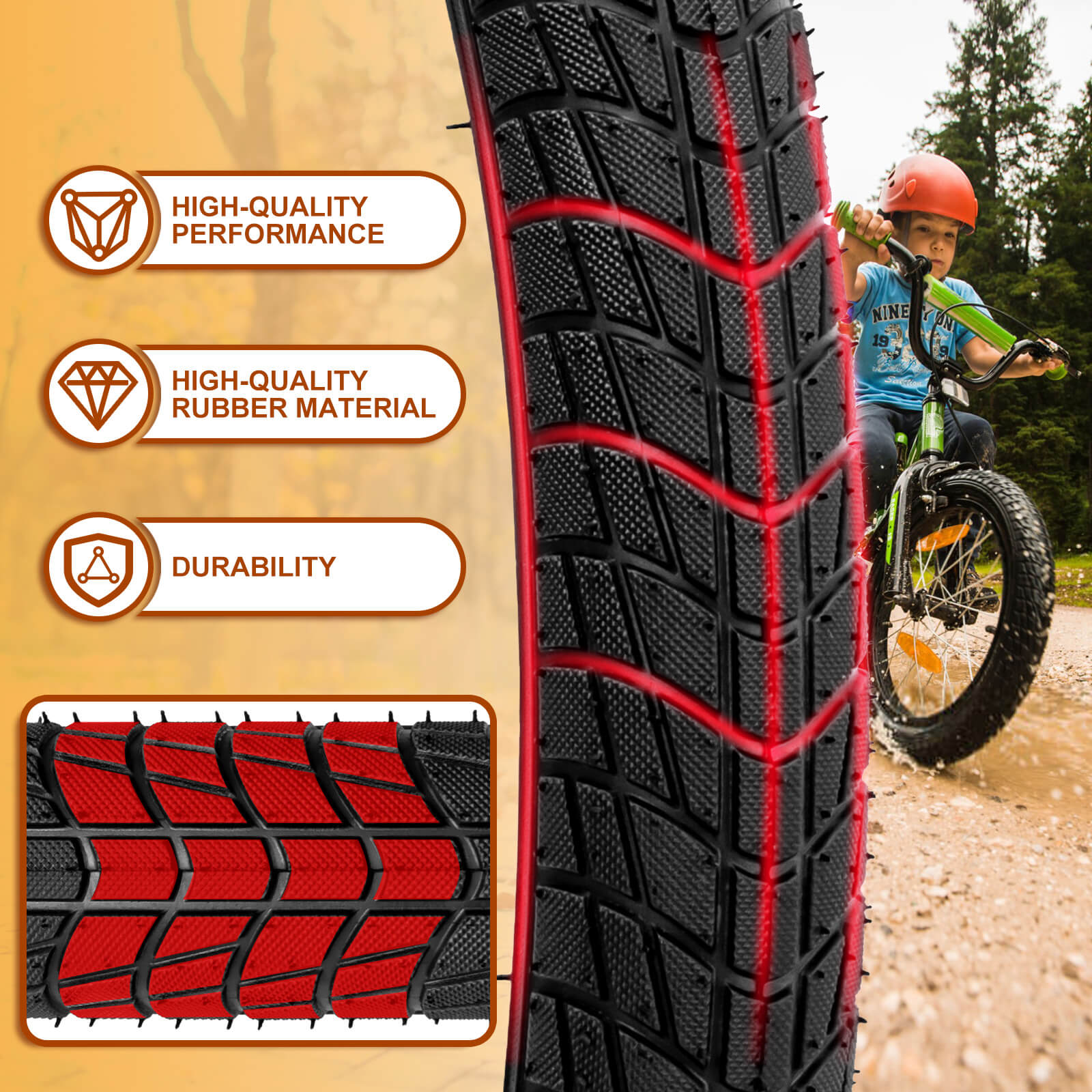 The tires are nice, the bead area seems very strong, although there is not a metal bead in these tubes, but there is a good amount of rubber bead thickness. The casting on the inside is very smooth all the way around and the sidewall does have some thickness to them. And the tread is cut in very nicely.