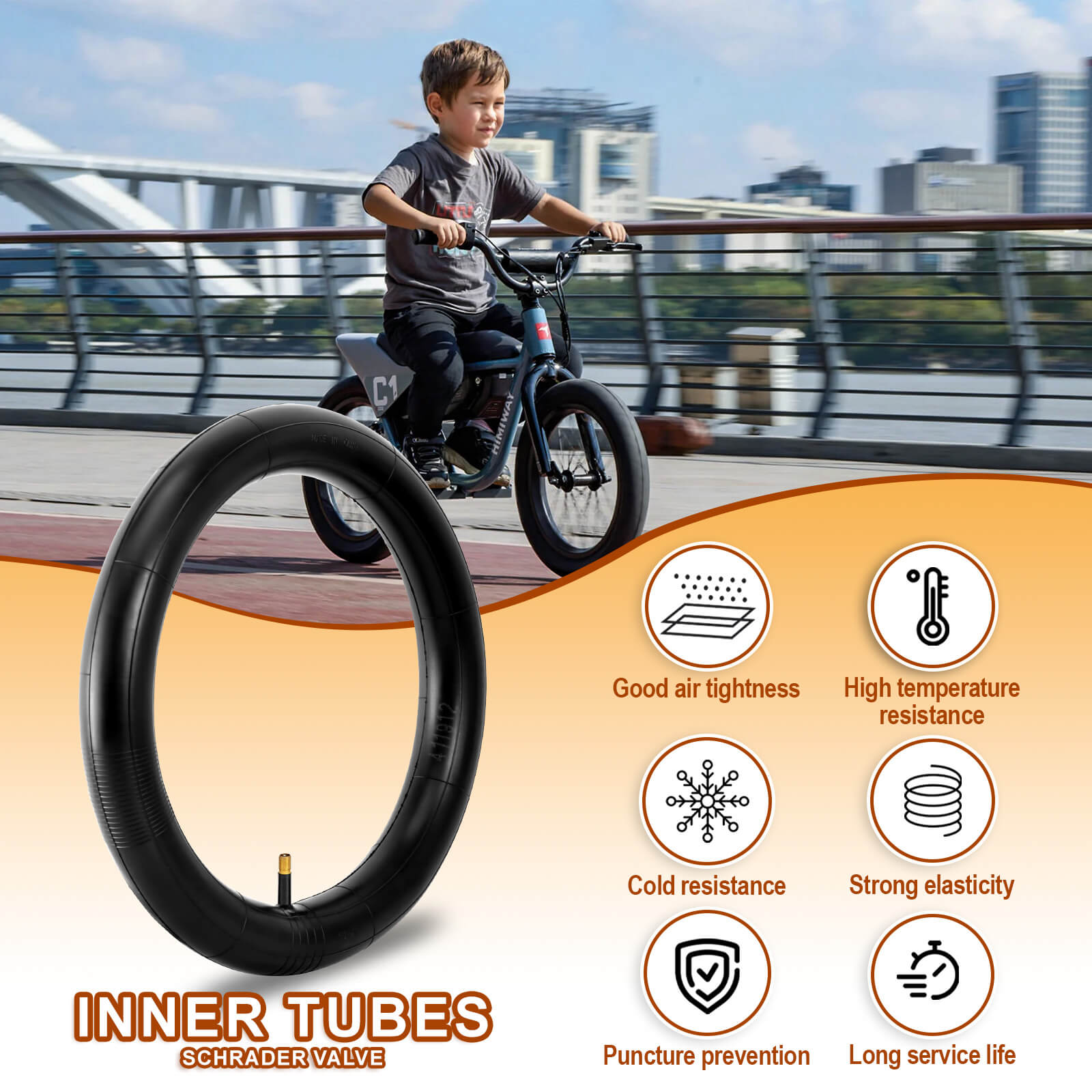 The inner tube feels good. Meaning the rubber is very flexible and the Shrader valve has great threads and looks well molded into the tube itself.
