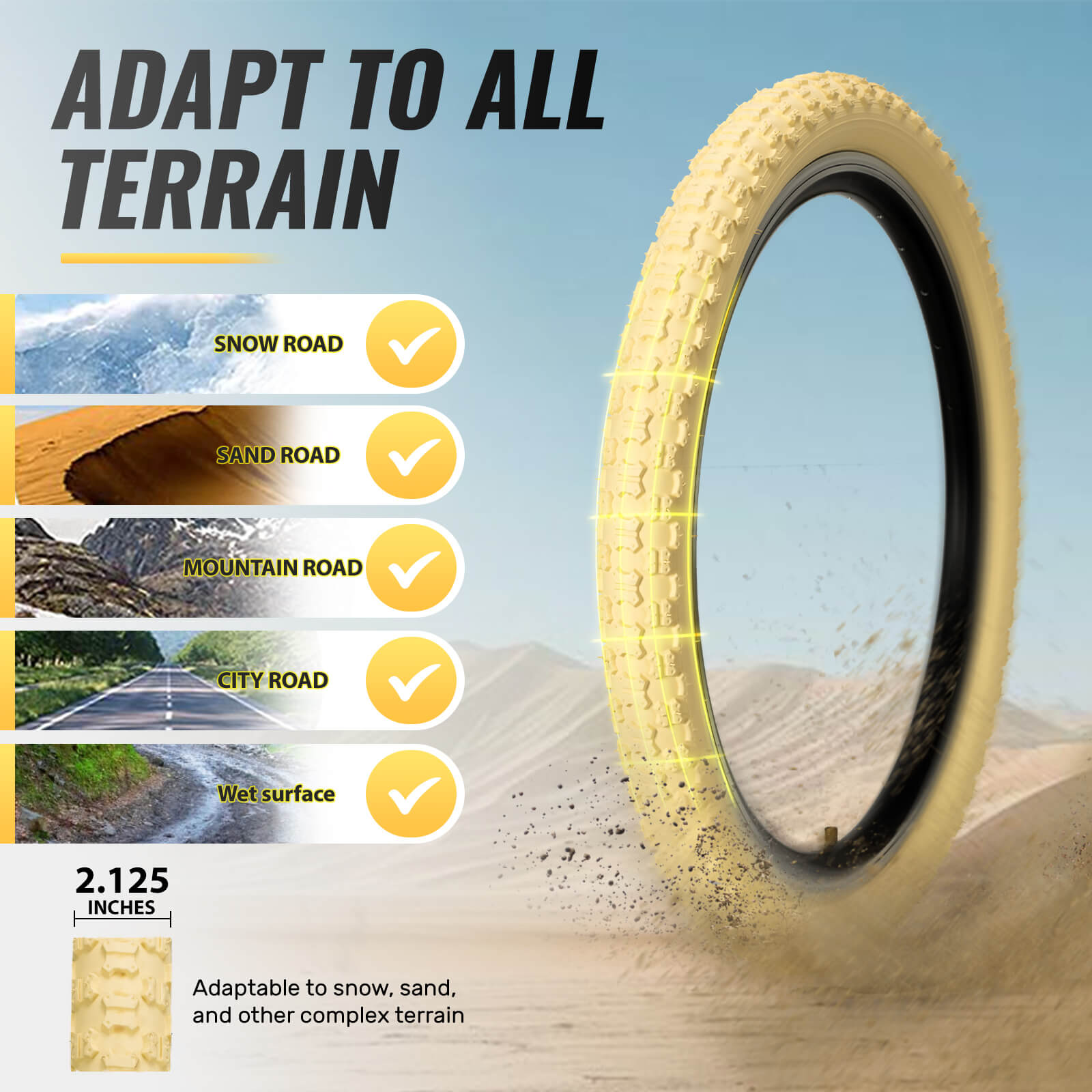 Bowlite is the perfect matching for kids, youth, and BMX bikes. Its wide, reinforced sidewall body and thick tread ensure grip, durability, and control for everyday rides or freestyle tricks. Available in beige or white, Bowlite adds standout style and performance to make your bike unique. Whether riding on city streets or adventuring on mountain trails, you will maintain stability and enjoy a safer riding experience.