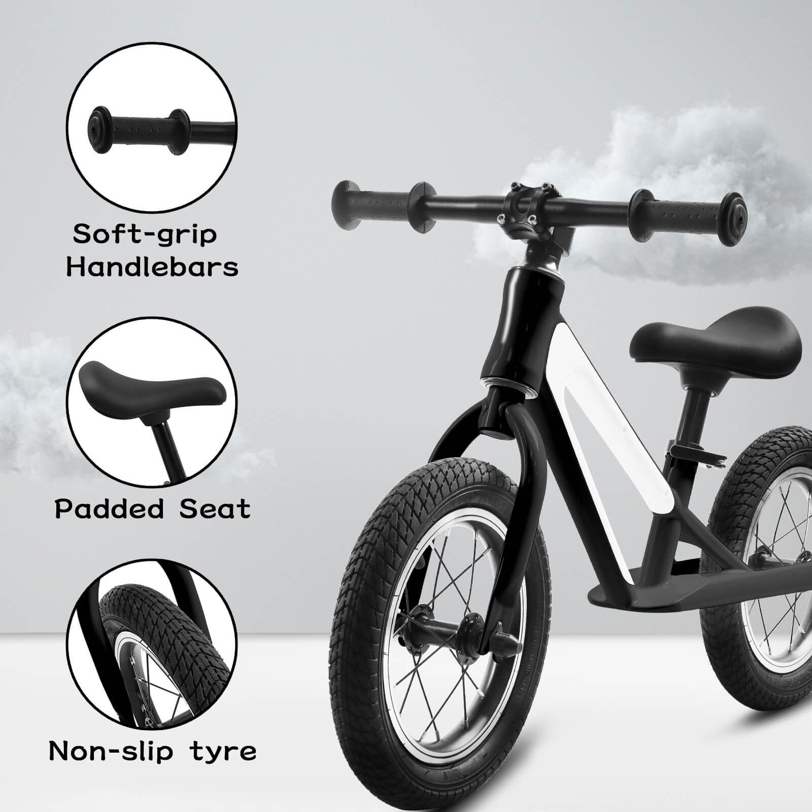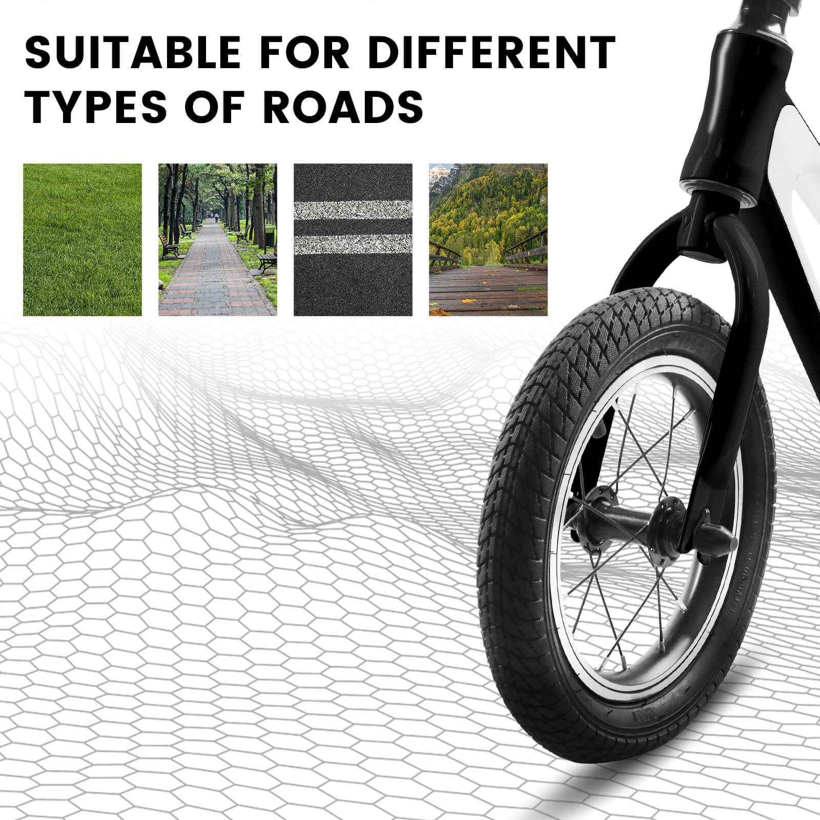 RUBBER TIRES -- This toddler bike's 12-inch rubber tires are far way more durable than other EVA tires. The non-slip surface gives more tear-resistant and a firm grip provides extra traction in wet conditions.