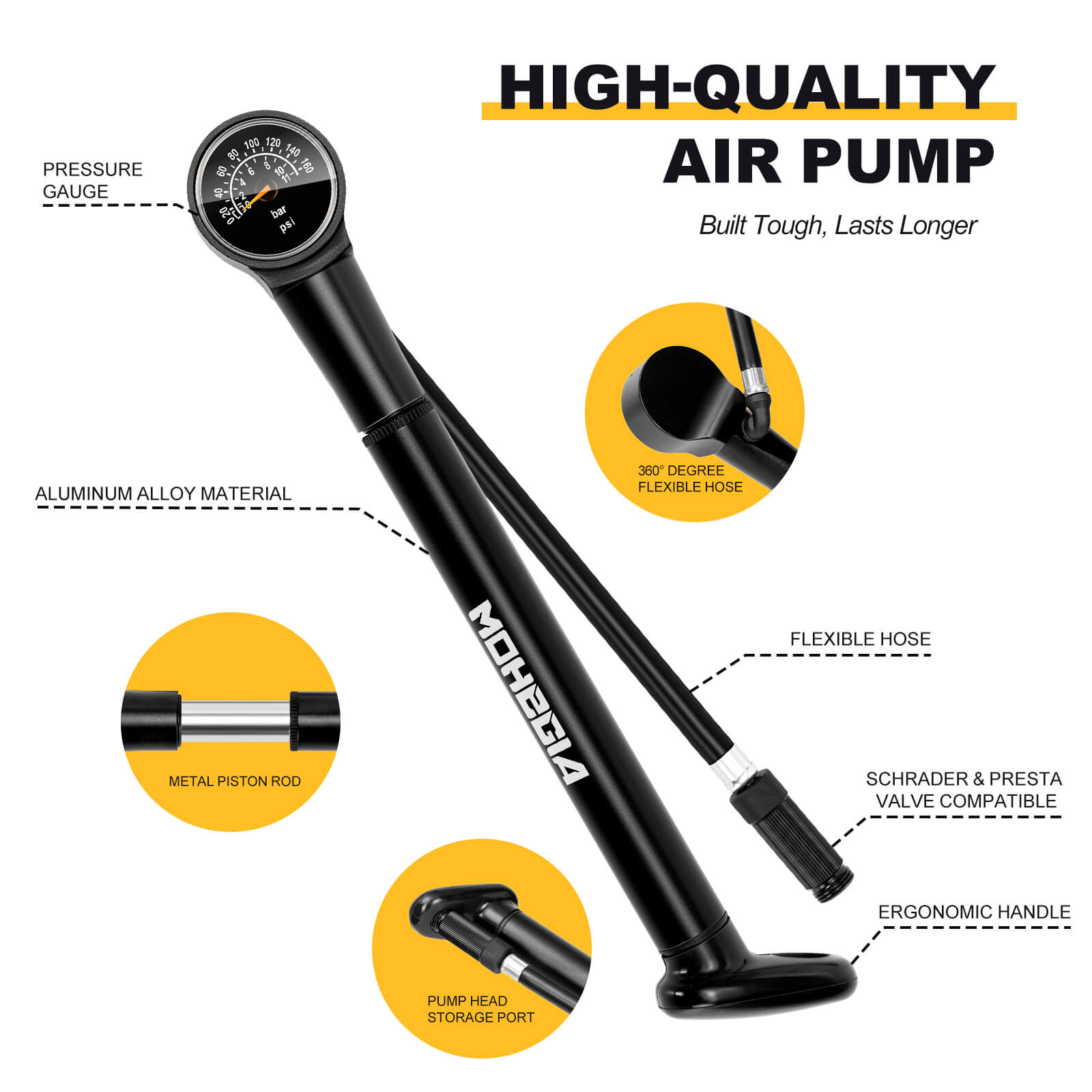 • High-Pressure Performance: Delivers up to 120 PSI, ideal for road, mountain, and kids' bikes.