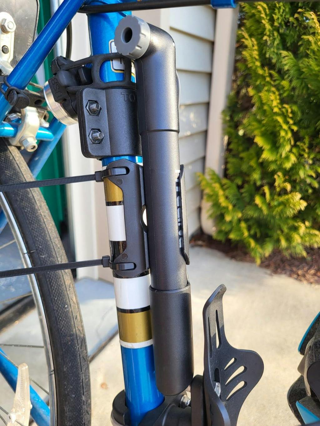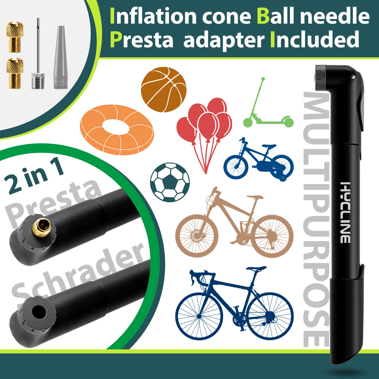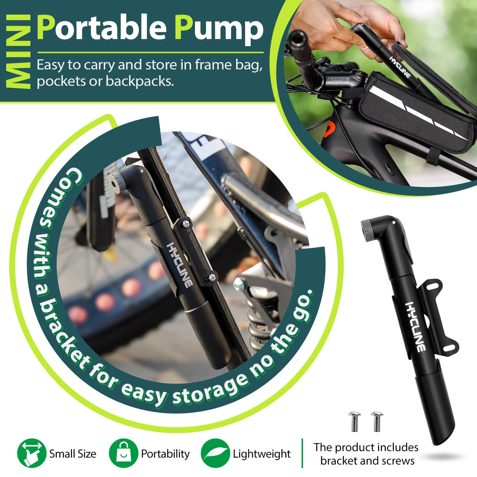 This is a decent hand pump. It has helped pump up a few balls already, and feels easy to use for its design. The right angle head is clever, but the long gray tab for locking on a valve isn't ideal. The mounting bracket assumes you have threaded holes on your bike frame for mounting, which my older bike does NOT. Providing a single piece bracket and two screws was not sufficient, but thankfully a pair of zip ties worked instead for mounting it to mine. I'm also entertained that it is "porteable," yes it's greatly portable, can be fixed on the frame