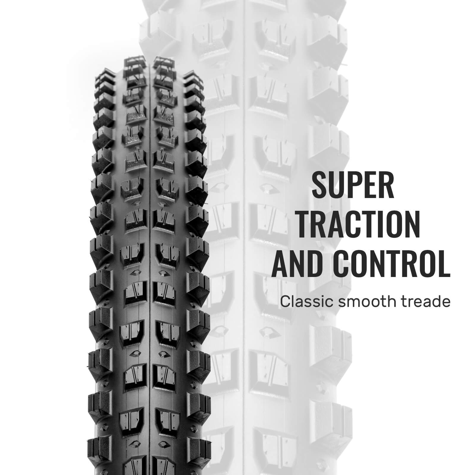 The Terrace’s blocky steps tread pattern makes it easy to conquer loose rocks and steep descents. The Terrace tire absorbs shocks and vibrations, while maintaining a smooth rolling feel without sacrificing control. Can be installed on ebikes or mountain bikes.