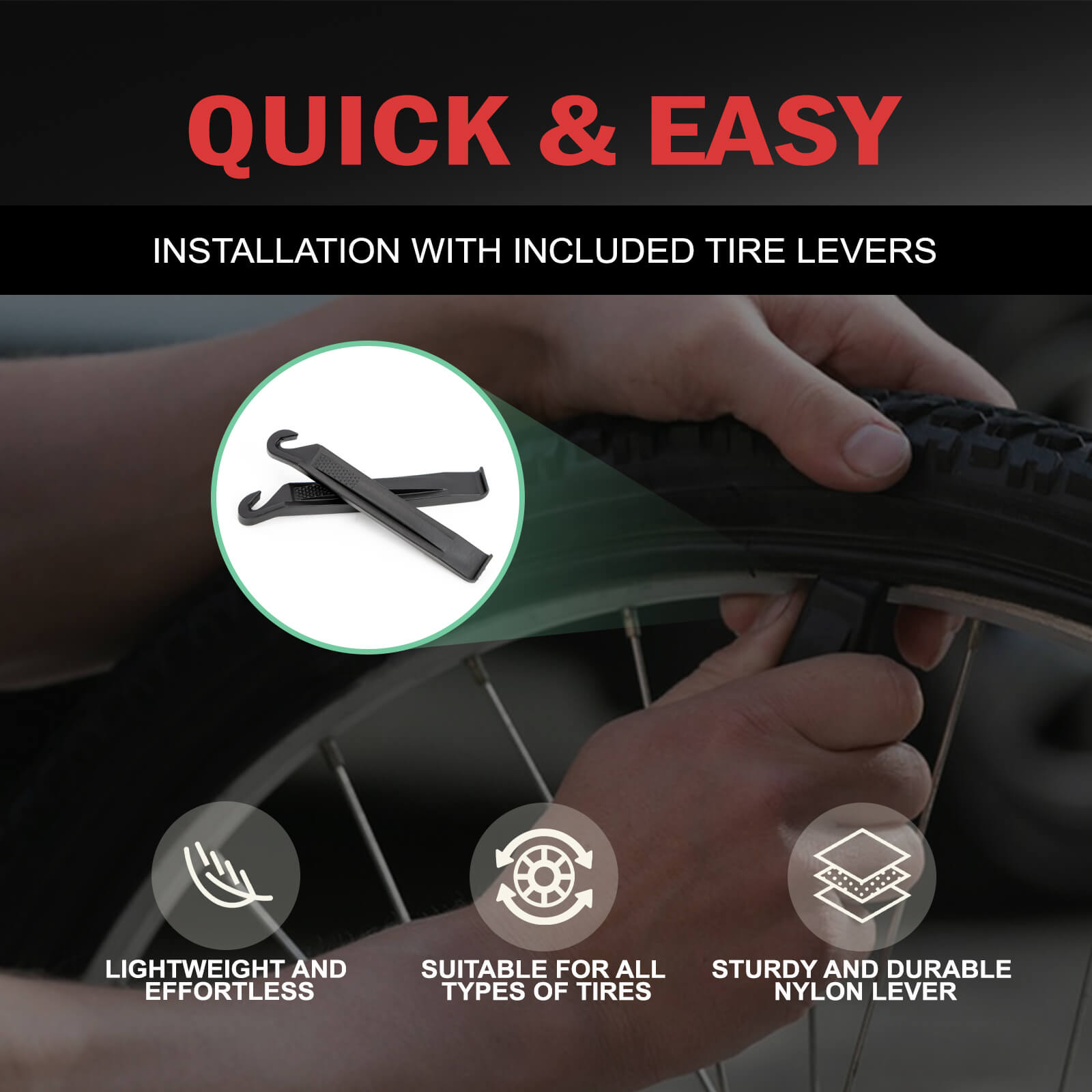 Includes 2 tire levers - Easy to install with included tire levers and fluorescent valve caps