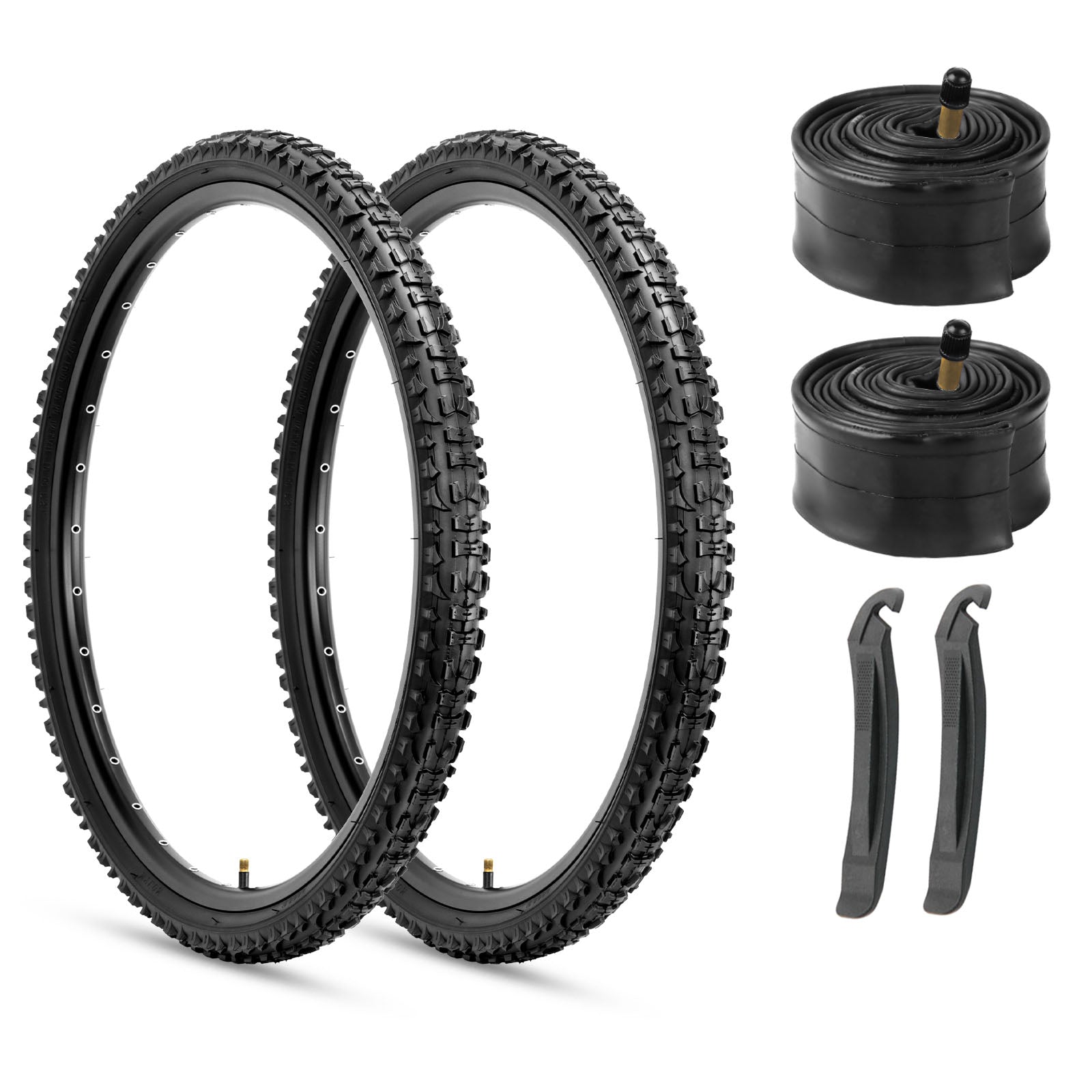 Picked up this 2-pack to replace the worn-out tires on my MTB, and I'm impressed. The tread pattern gives solid grip on dirt trails and gravel, but still rolls smoothly on pavement. The tires feel durable, and the puncture resistance seems to hold up well so far.Installation was pretty easy with the included tire levers, and the inner tubes fit perfectly. For the price, this is a great deal, good quality tires that don't break the bank. If you need a solid replacement set for off-road riding, this is a great option! I installed these on a Giant Yukon converted to a 36v Electric bikeMounting was pretty straight forward, but there was an excess material that should've been removed. Shows a lack of quality control.Also, wheel tape should have been part of the kit.