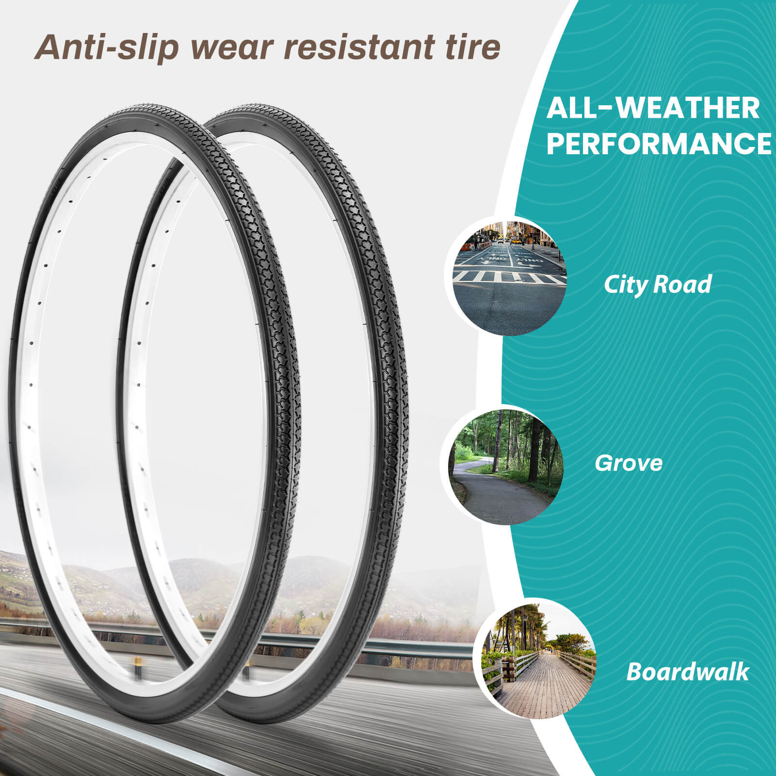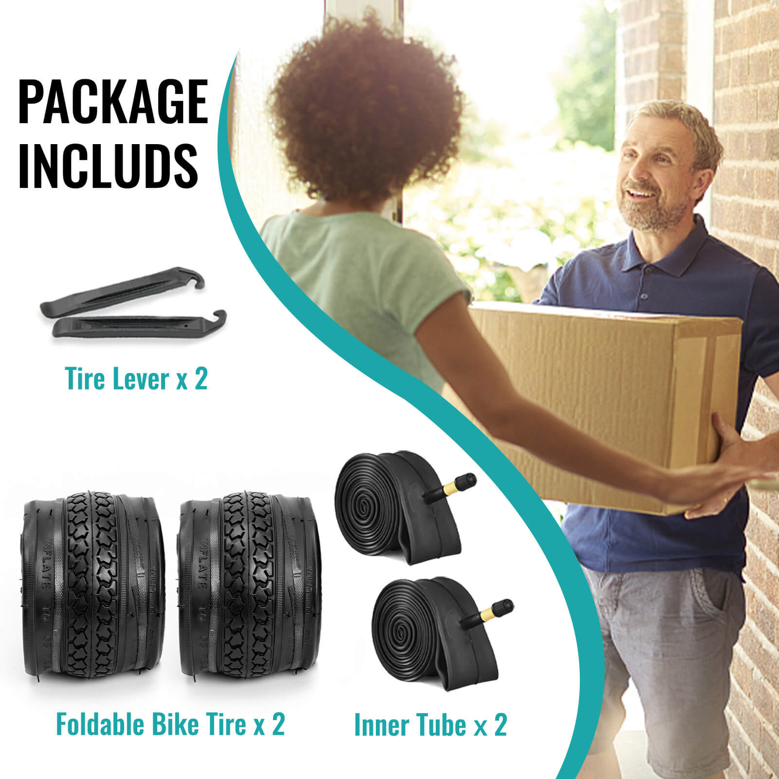 I was surprised to find out that these tires arrived folded up and held together with an elastic. But they easily came into shape and were a perfect fit on the rims. So far, they are great. I ride at least 50 miles a week and anticipate that these tires will last for a couple years.