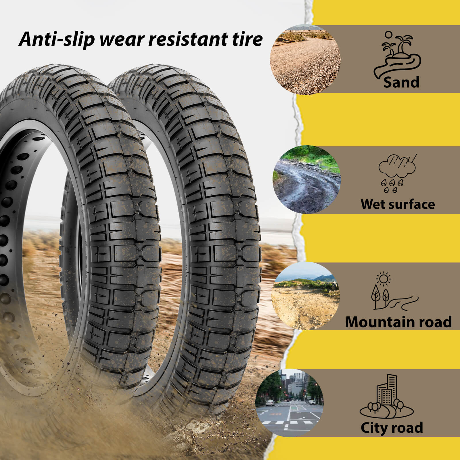 Good quality double the weight of the original tires, lower rolling resistance on pavement.