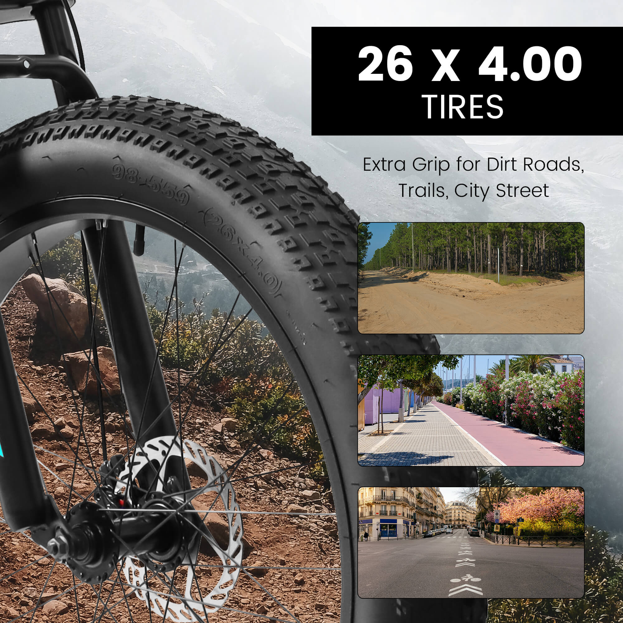 Perfect for thrill-seekers and outdoor enthusiasts, this bike combines strength, performance, and style for an unbeatable riding experience. Get ready to conquer any terrain with the Ecarpat Jumbo Fat Bike! It has better shock absorption than WildCycle, enough to cope with more difficult mountains.