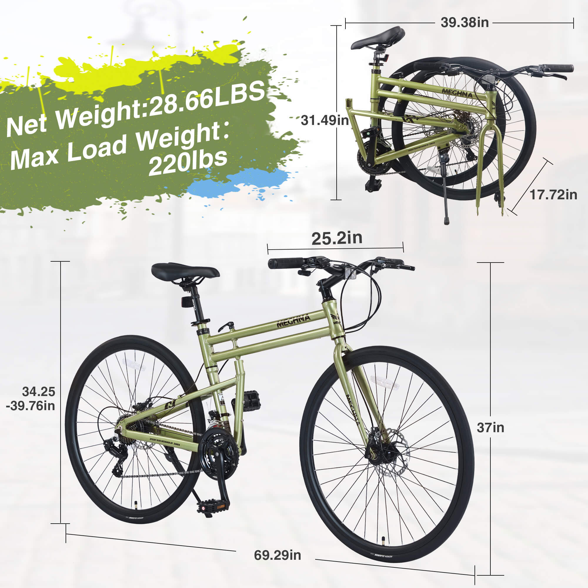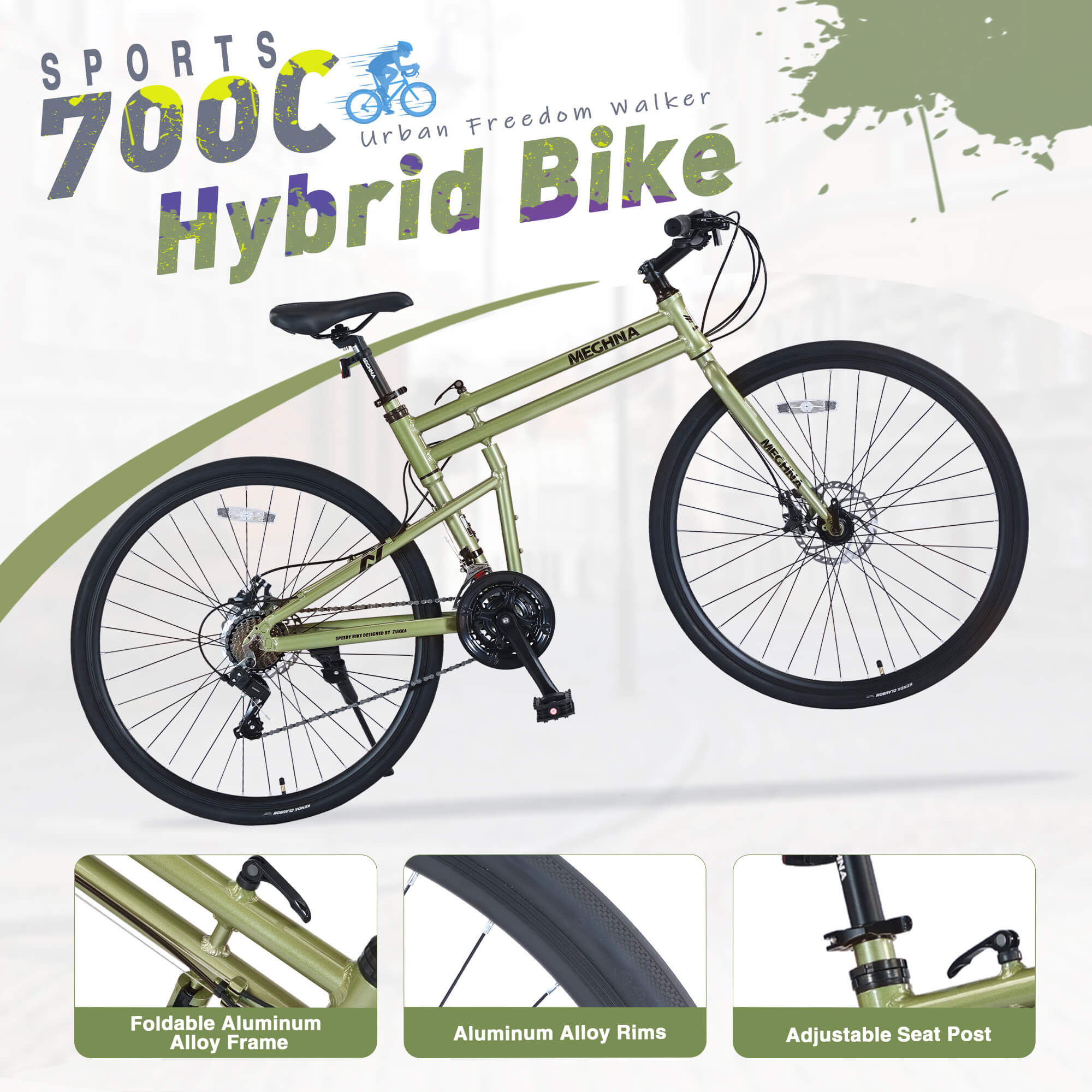 Lightweight, durable, and versatile, the Meghna Fevo features a 700C aluminium alloy frame with 32C tires, perfect for smooth and stable rides. Its 3×7-speed shifting system ensures seamless gear changes, while the easy folding design (39.38×31.49×17.72 inches) makes storage simple. Ideal for commuters and leisure riders, this bike is built to perform and adapt to your lifestyle!