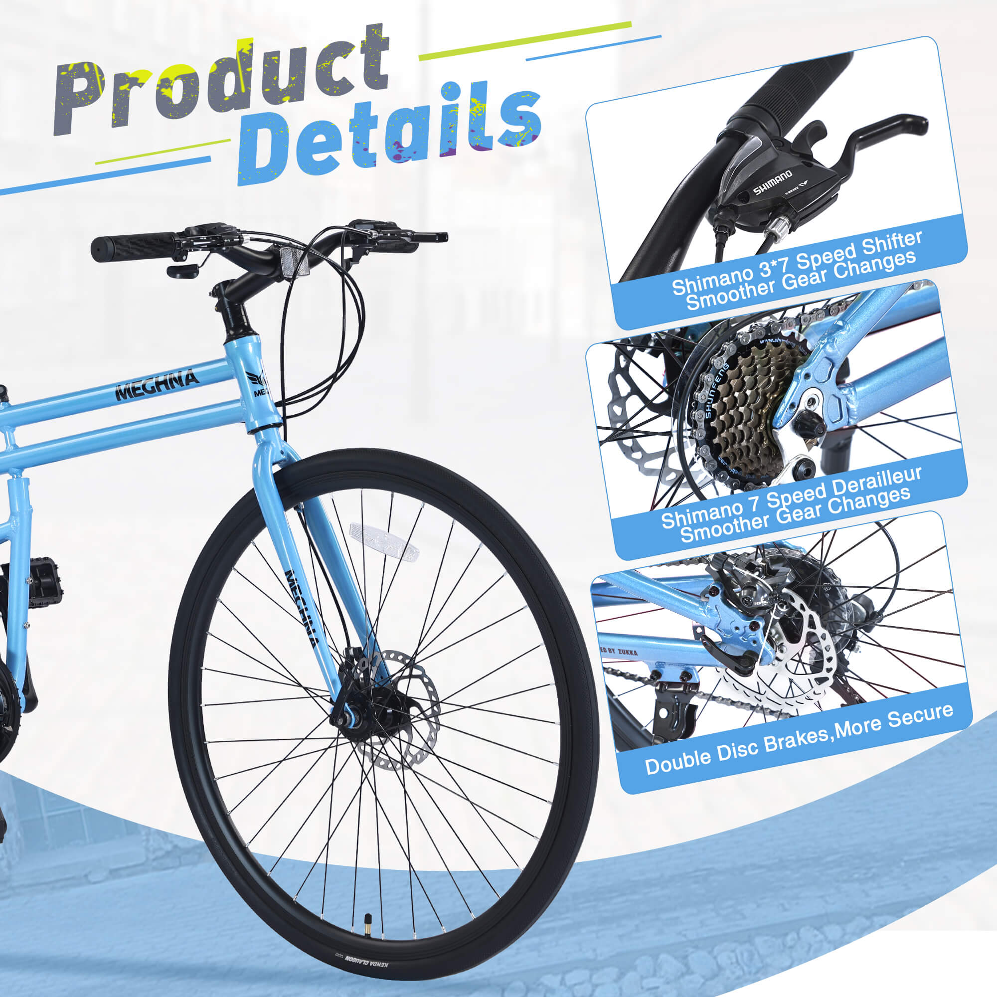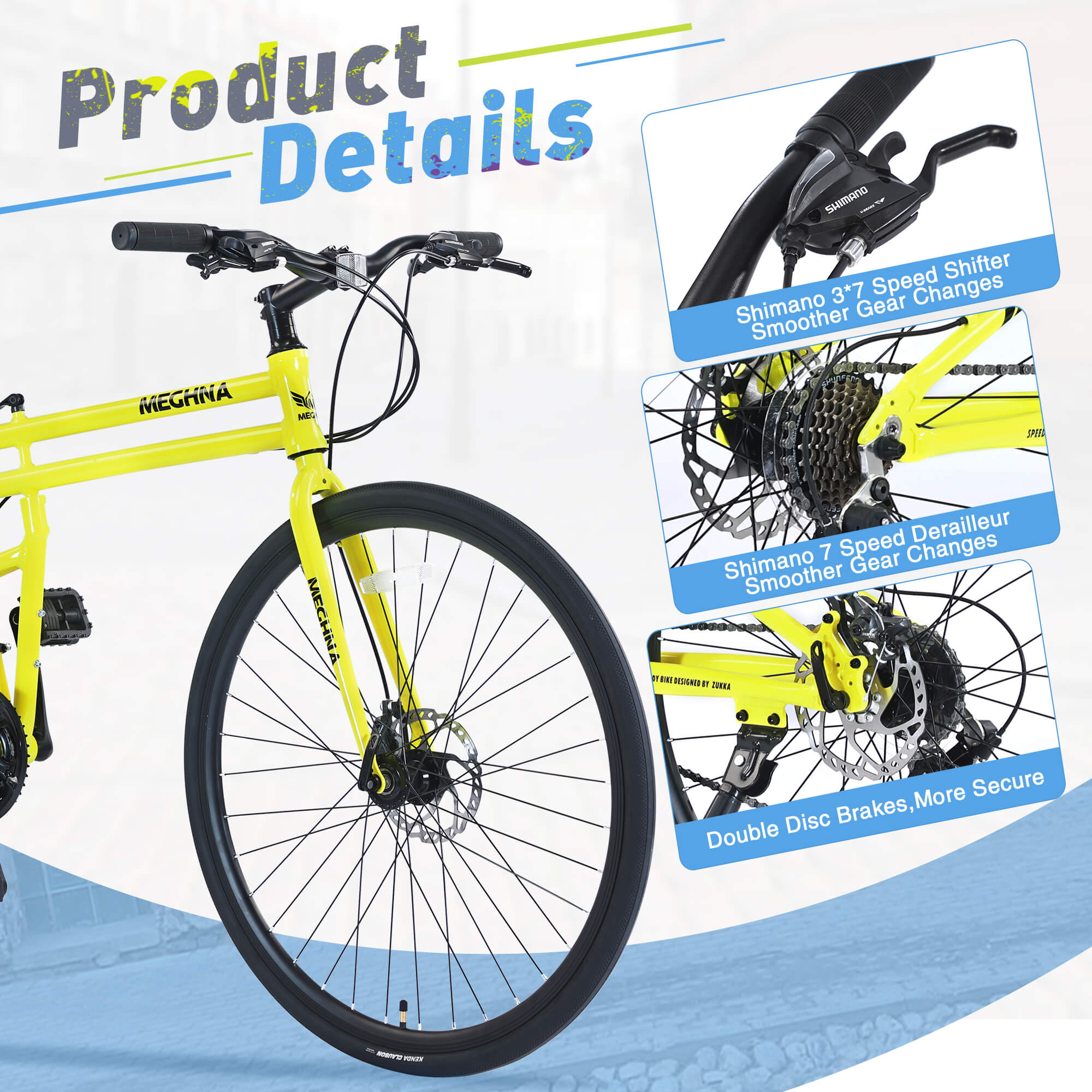 • Shifting System: 3×7-speed shifter and 7 speed rear derailleur TY200, high-quality shifting system to ensure smooth shifting when riding. Whether it's commuting, or going out to play, it's a particularly suitable means of transportation.